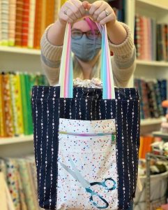 You will need to purchase the pattern, fabric and notions for a bag pattern of your choice. Here are a few of our favorites we suggest. If you have another you’d love to do just let us know! And if you are unsure which one is best for your skill level feel free to ask.